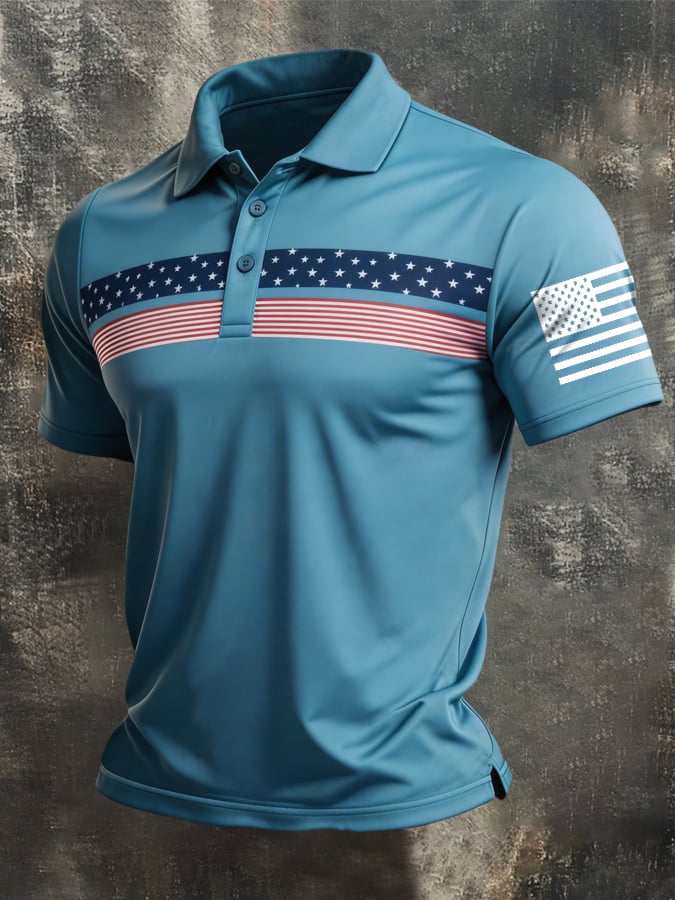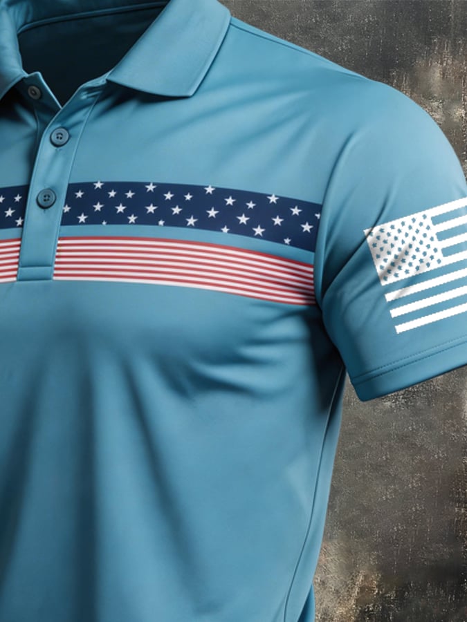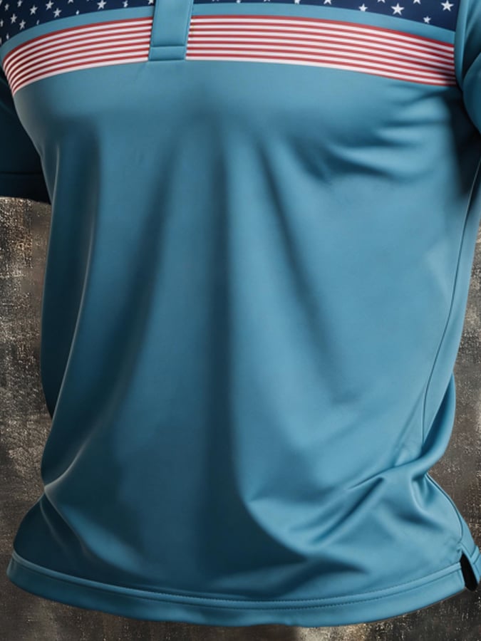 Men's Retro Patriot Color Block Polo Collar Short Sleeve