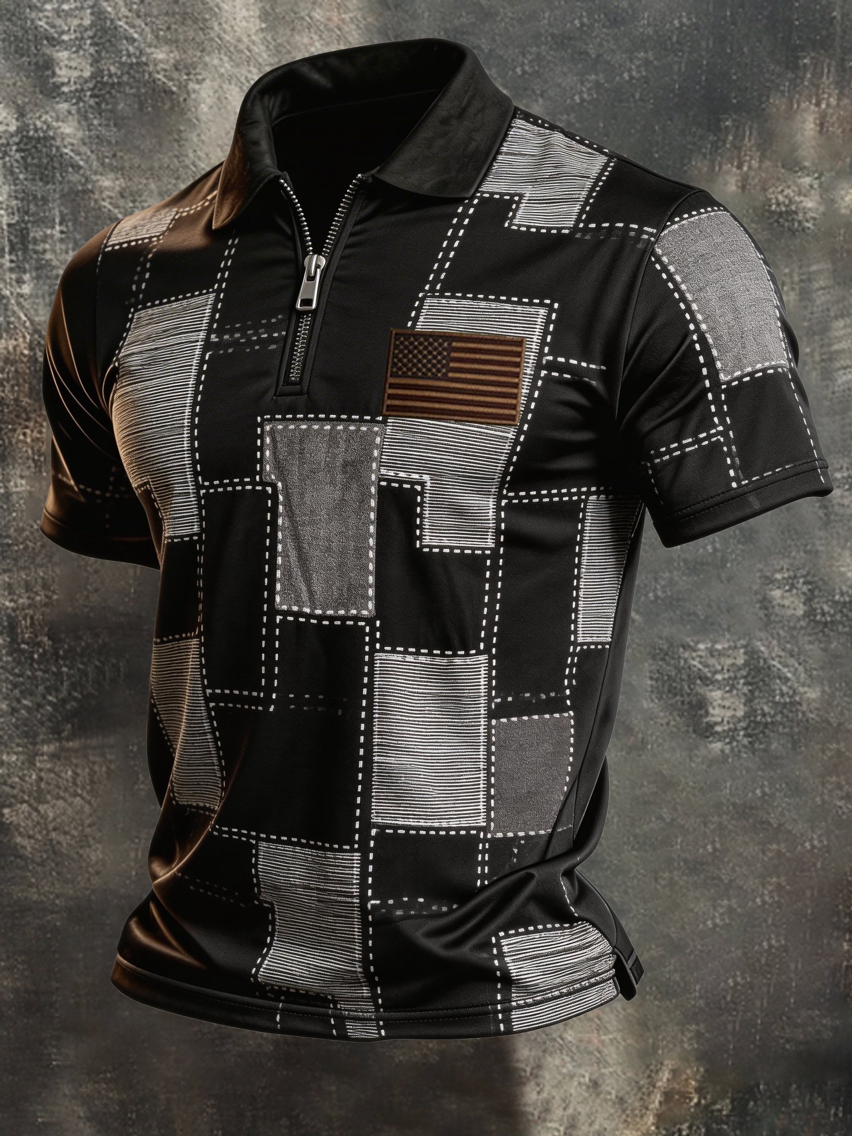 Men's Retro "Patriot" Color-Block Short-Sleeve Half-Zip Polo Shirt