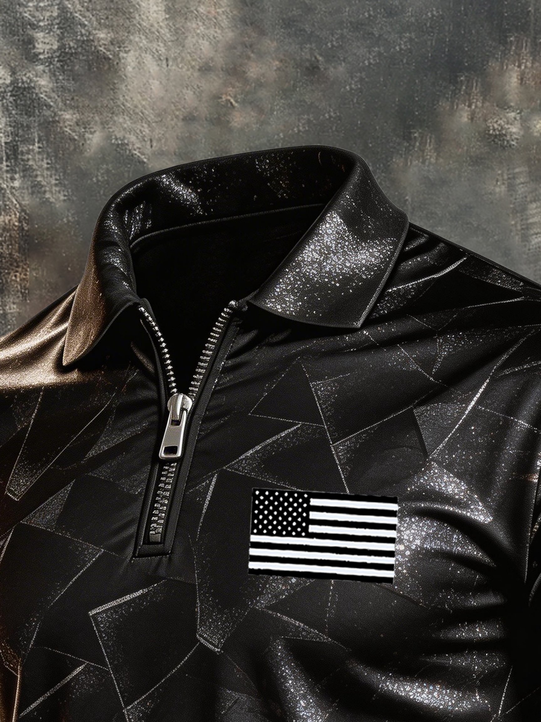 Men's Retro "Patriot" Color-Block Short-Sleeve Half-Zip Polo Shirt