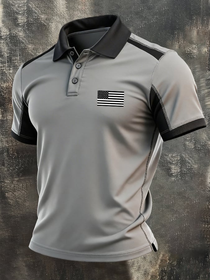 Men's Retro "Patriot" Color-Block Short-Sleeve Polo Shirt