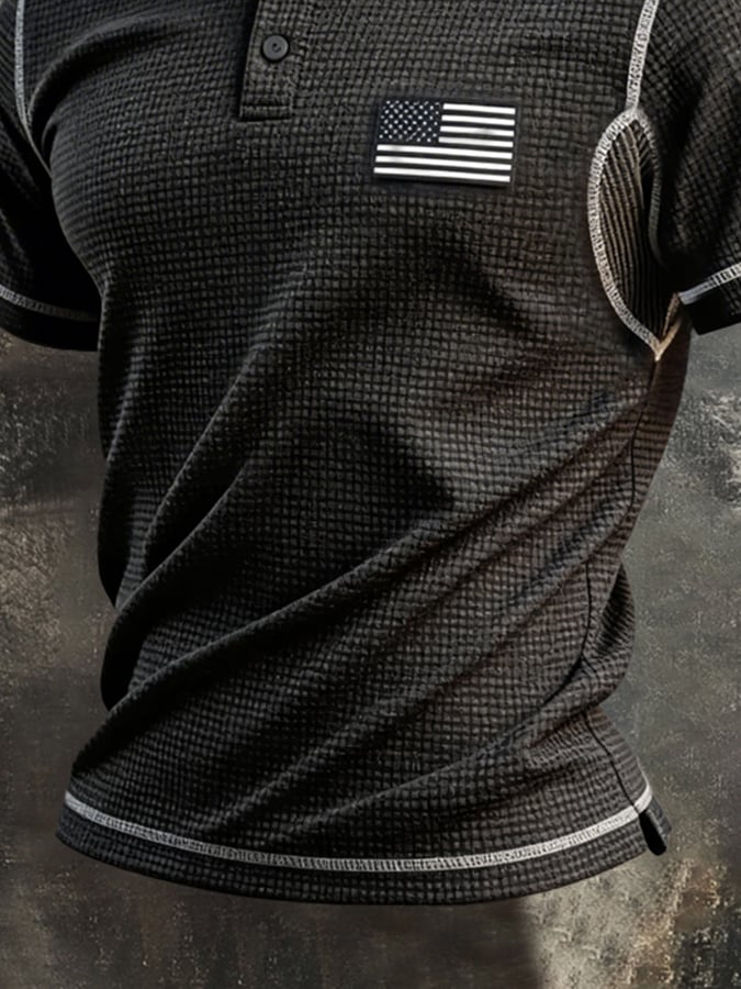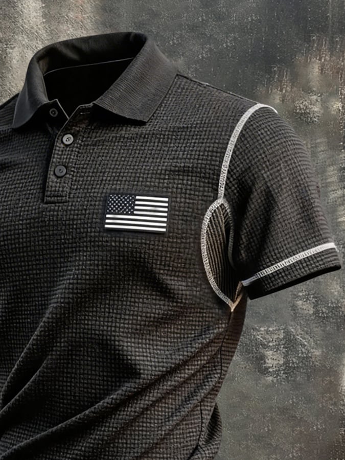 Men'S Retro "Patriot" Color-Block Waffle-Knit Short-Sleeve Polo Shirt