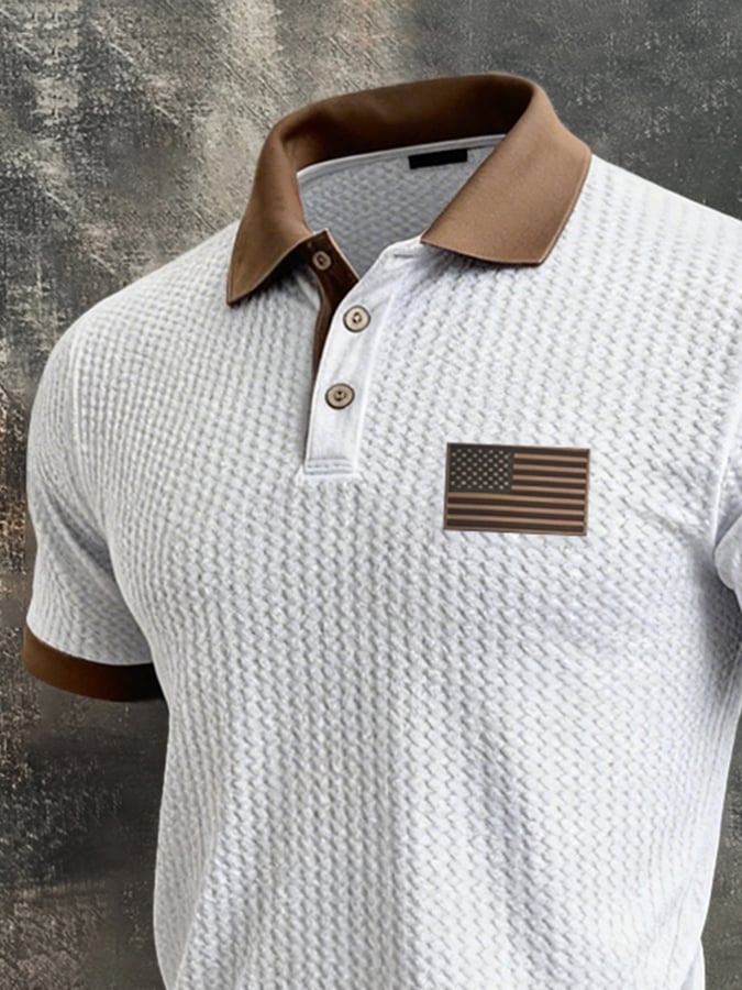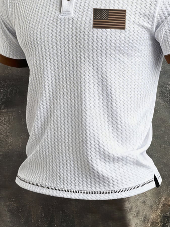 Men'S Retro "Patriot" Textured Fabric Short-Sleeve T-Shirt With Contrast Polo Collar