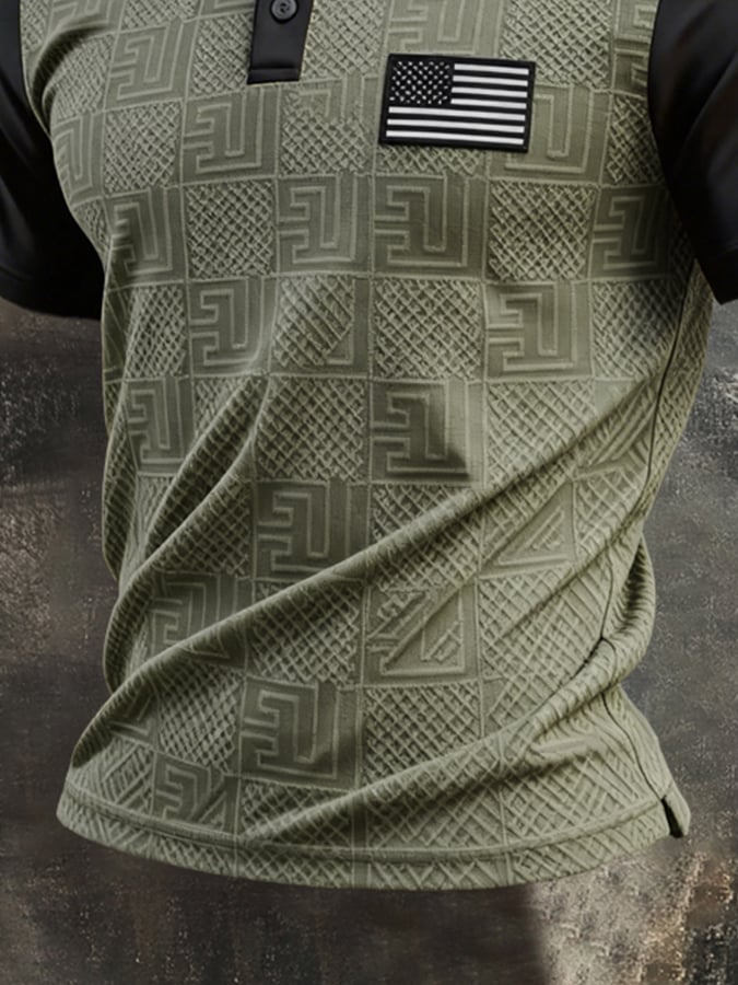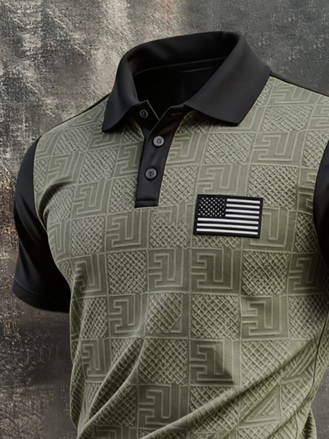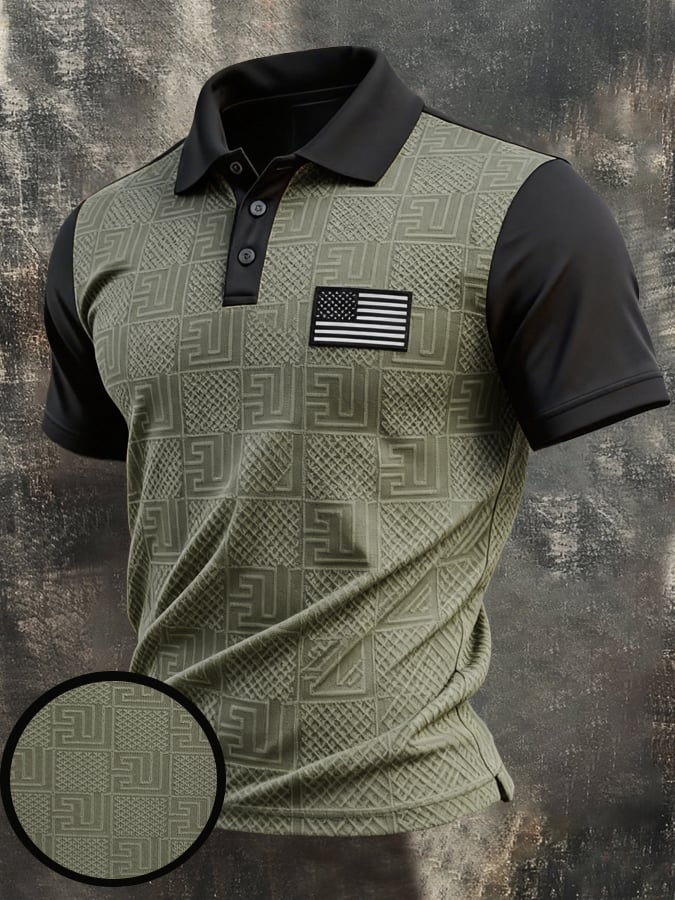 Men'S Retro "Patriot" Textured Fabric Short-Sleeve T-Shirt With Contrast Polo Collar