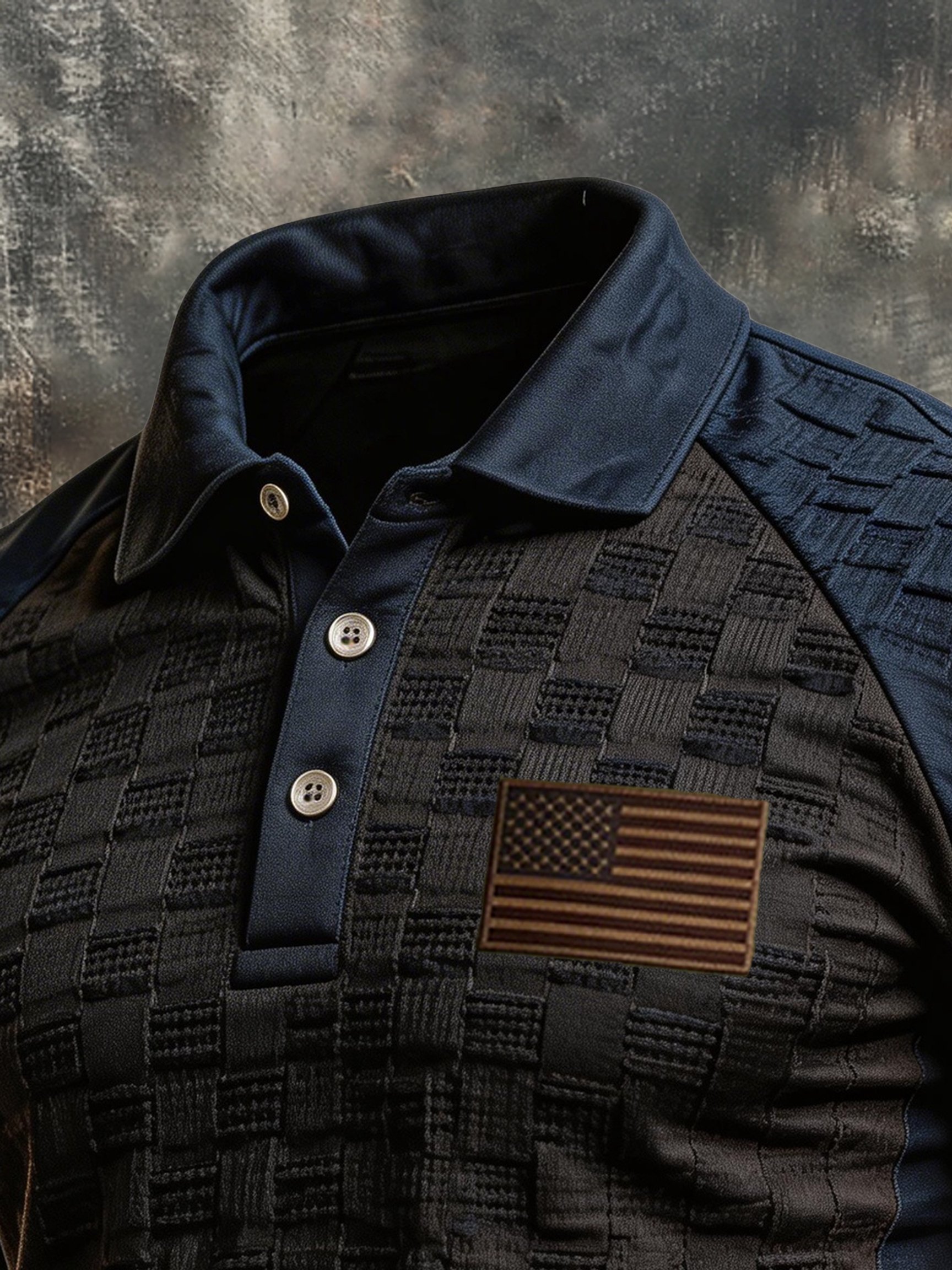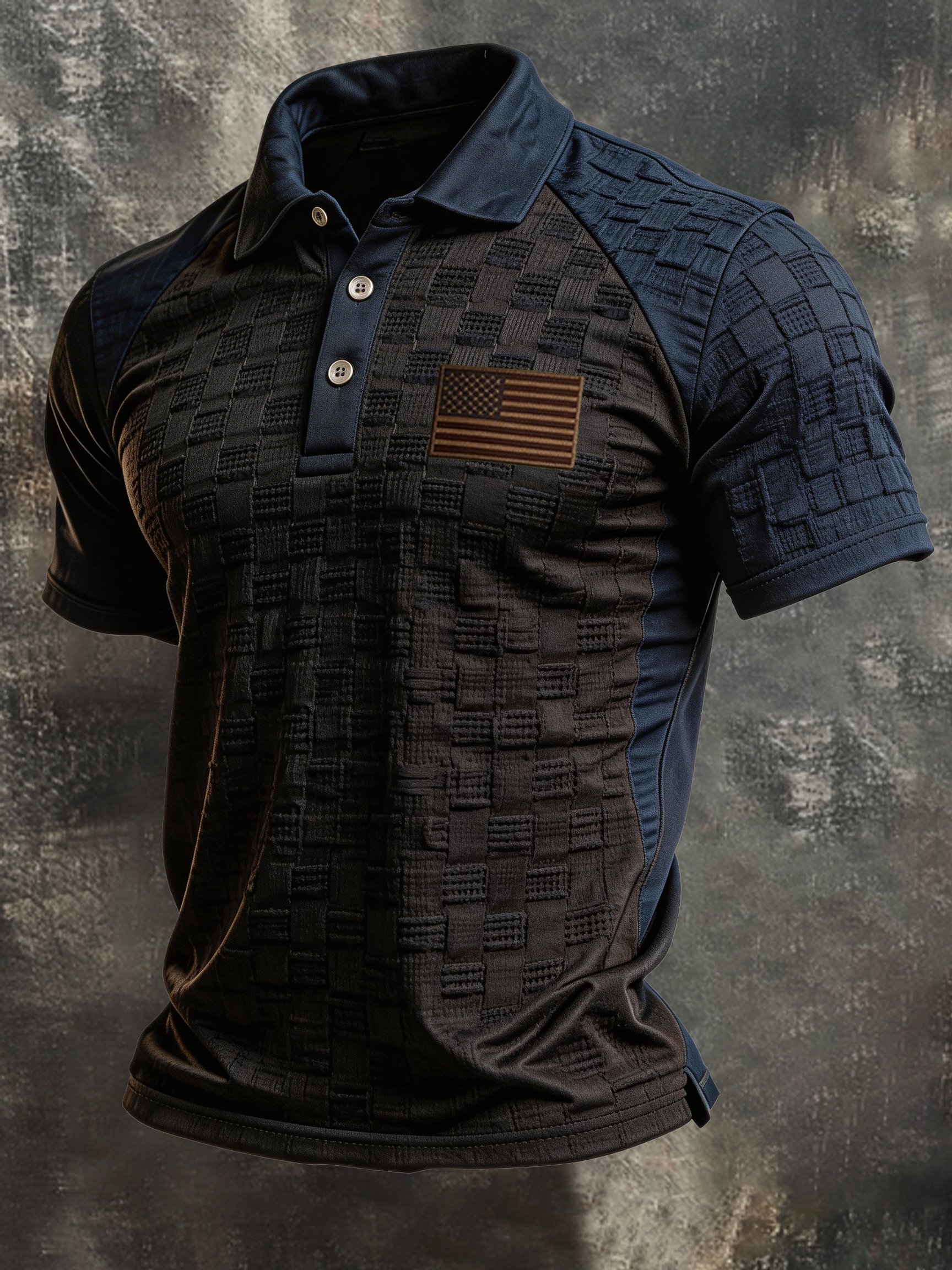 Men's Retro "Patriot" Textured Fabric Short-Sleeve T-Shirt with Contrast Polo Collar