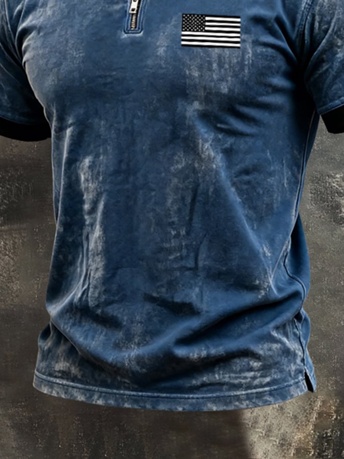Men's Retro-Print, Color-Block "Patriot" Casual Short-Sleeve Polo Shirt