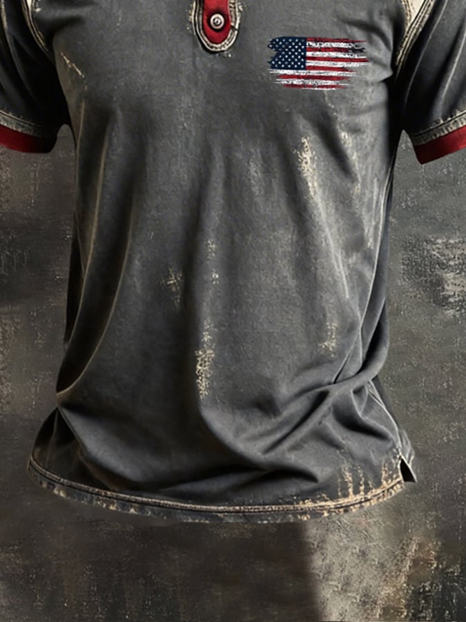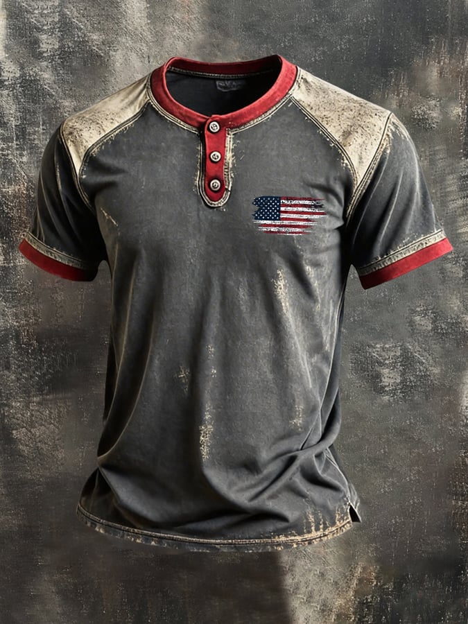 Men's Retro-Print, Color-Block "Patriot" Casual Short-Sleeve T-Shirt