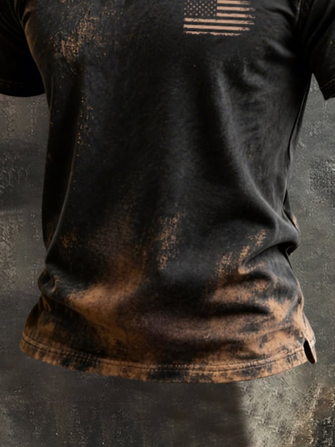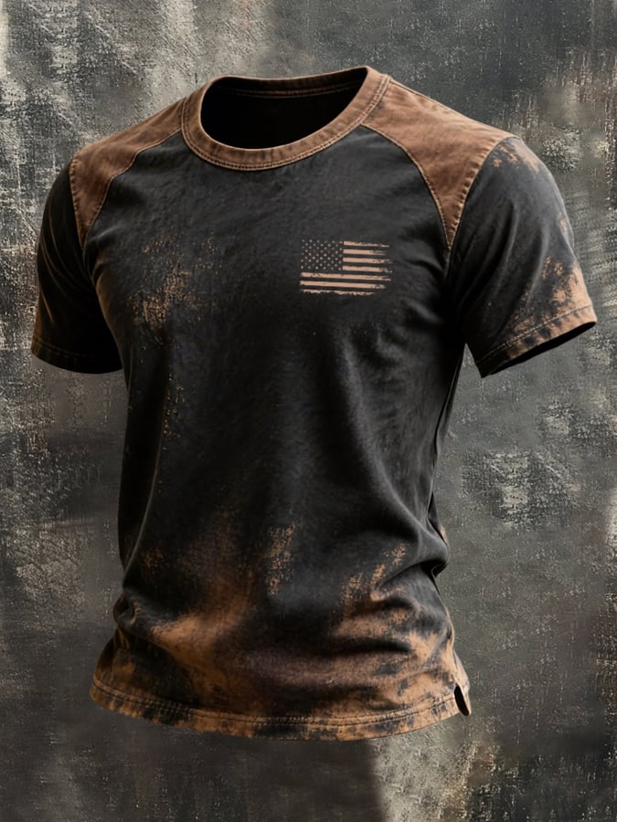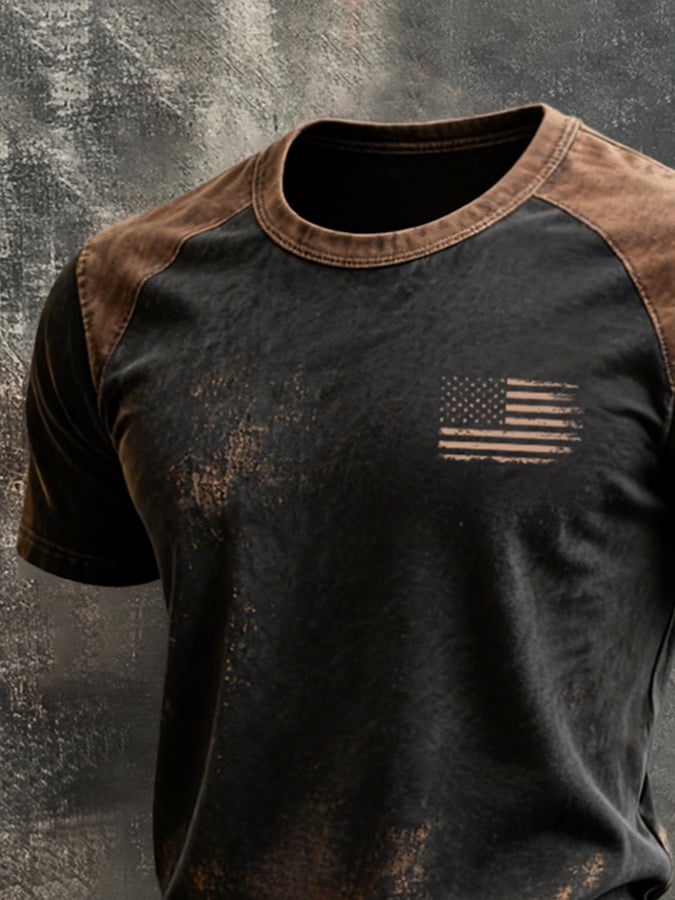 Men's Retro-Print, Color-Block "Patriot" Casual Short-Sleeve T-Shirt