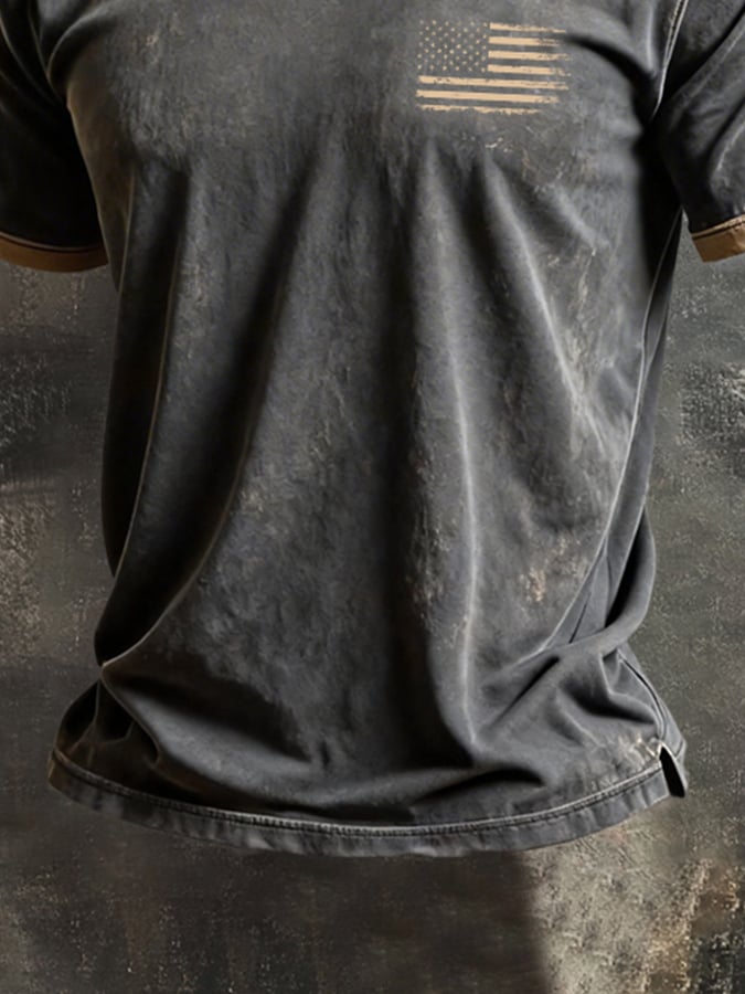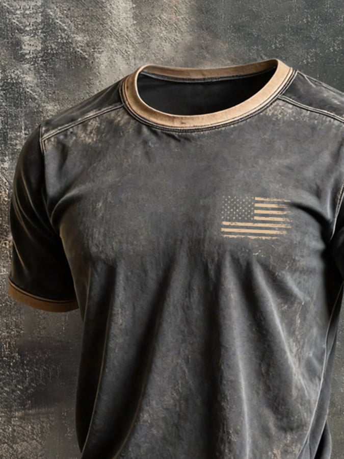 Men's Retro-Print, Color-Block "Patriot" Casual Short-Sleeve T-Shirt