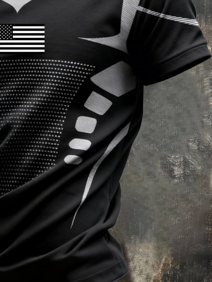 Men's Retro Slim Fit Textured Camouflage Patchwork T-Shirt