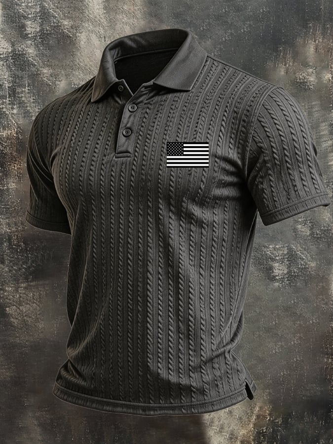 Men's Retro Textured Color-Blocked Polo Collar Short Sleeves