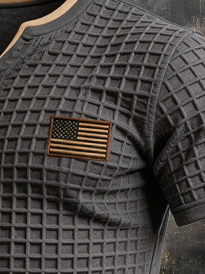 Men's Retro Textured Color-Blocked Polo Collar Short Sleeves