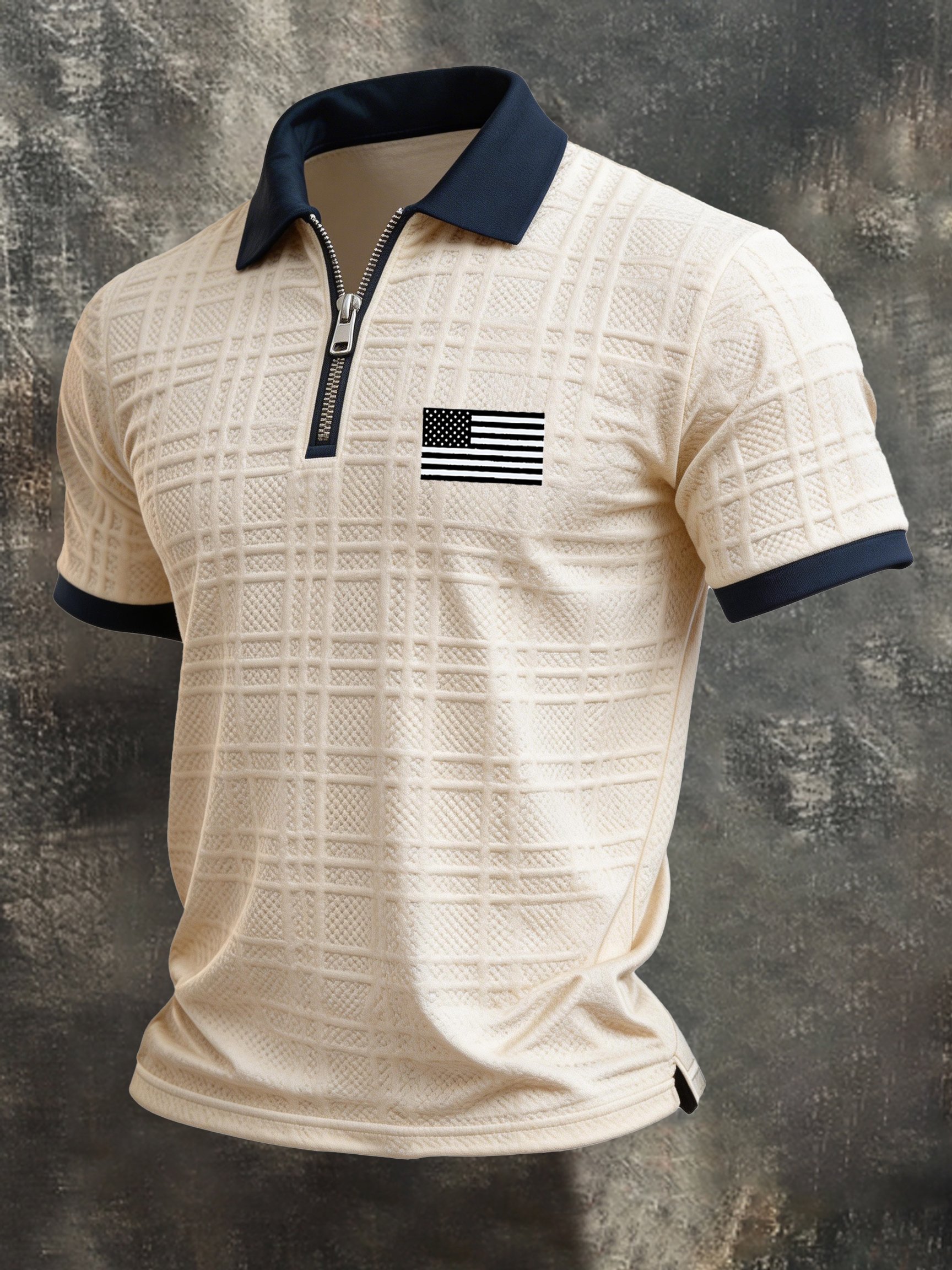 Men's Retro-Textured Patriotic Short-Sleeve Half-Zip Polo Shirt