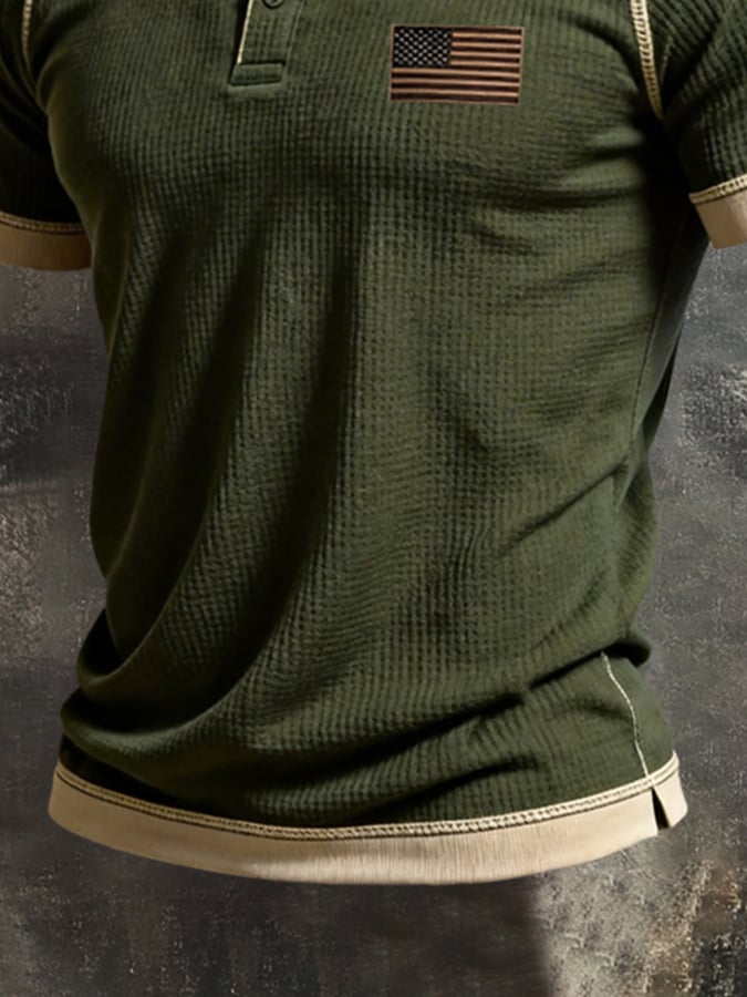 Men'S Retro Waffle-Knit Short-Sleeve T-Shirt With Contrast Patriot Design