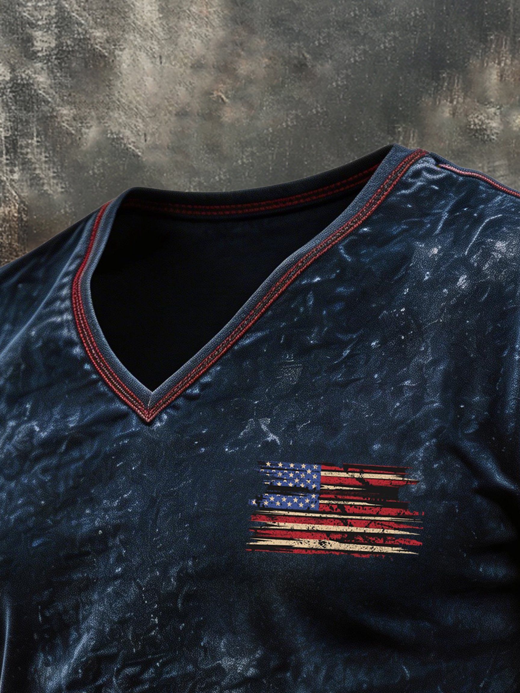 Men's Vintage Distressed Washed Patriotic V-Neck Short-Sleeve T-Shirt
